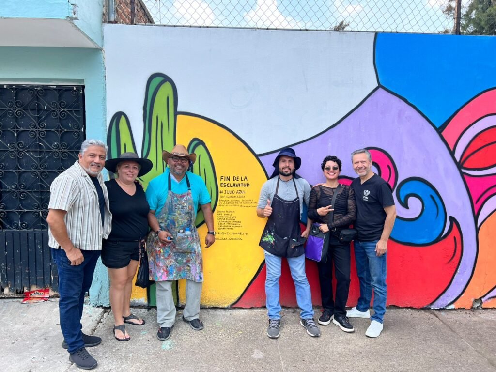 Un mural colectivo impulsado por la organización Fin de la Esclavitud A.C. reunió a más de 80 voluntarios en una jornada artística que buscó generar conciencia social sobre la trata de personas, como parte de la campaña nacional “Julio Azul 2025”.